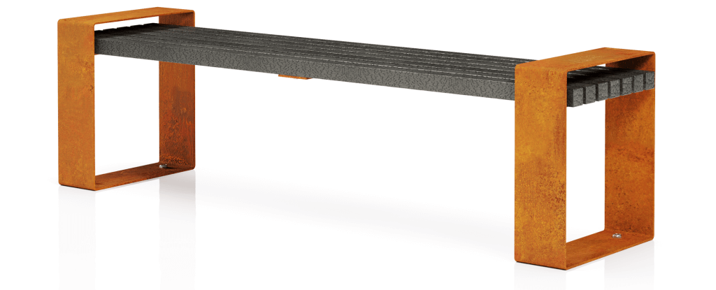 The bench can be made not only from Corten steel but also from galvanized steel, which can be painted in any desired RAL color upon request.