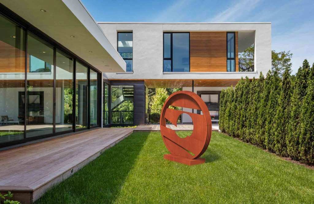 A finoman elrendezett nyílásoknak köszönhetően a változó árnyékok mozgás illúzióját keltik, és ahogy a fényviszonyok változnak, a szobor is átalakul, új formákat hoz létre, harmonikusan illeszkedve a fény és árnyék játékához.