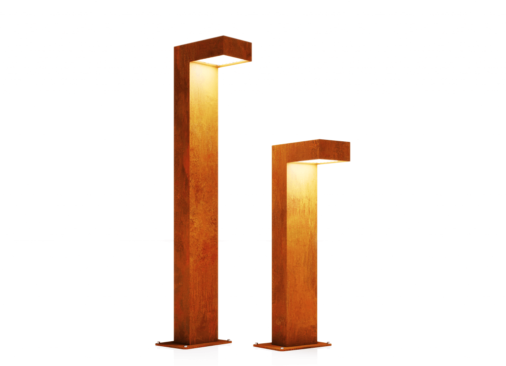 Látványosan robusztus, modern Corten acél lámpatest – ELIS. Minimalista, mégis játékos; egyszerű, mégis figyelemfelkeltő, geometrikus formáival időtálló designt és kivételes minőséget képvisel. Az Elis lámpa széles körben alkalmazható: ösvények, autóbeállók, teraszok és egyéb kültéri terek megvilágítására.