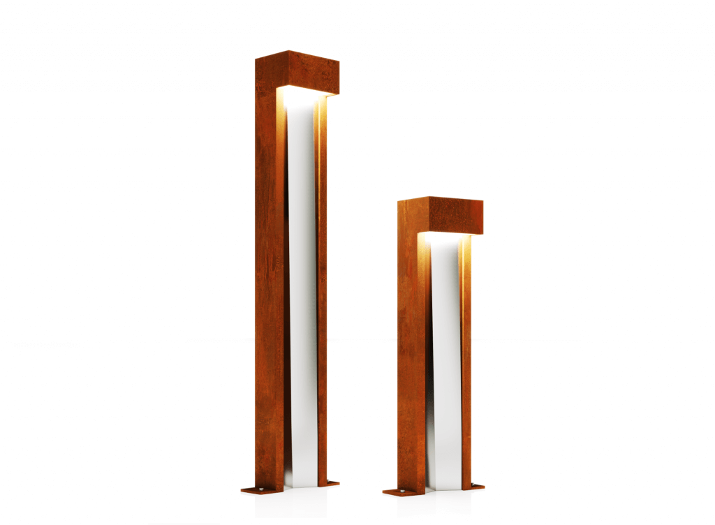 Modern, dekoratív stílusú lámpatest – LIMA. A Corten és rozsdamentes acél egyedi, mégis harmonikus kombinációja kifinomultságot kölcsönöz a tájépítészetnek. A matt Corten acél felület természetesen illeszkedik az építészethez és a környezethez, míg a belső polírozott rozsdamentes acél részlet gyönyörűen veri vissza a fényt. A Lima lámpatestek sokoldalúan használhatók ösvények, épületek közötti utak, teraszok vagy tájvilágítás részeként.
